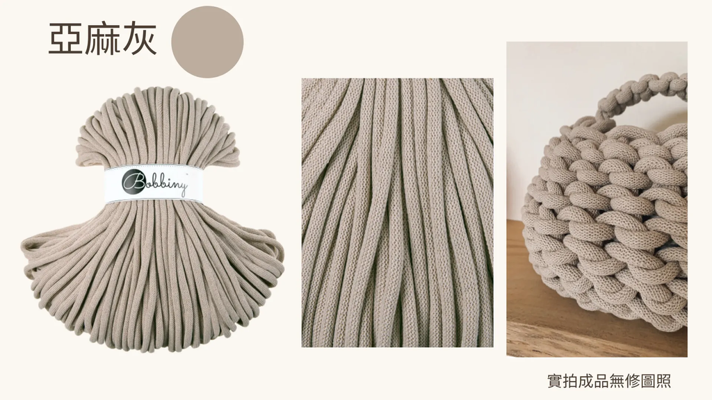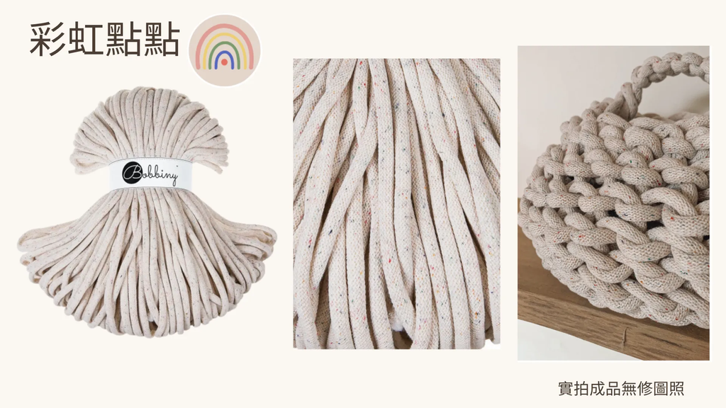 💁🏻♀️:9mm在市面上為比較少見的線材,尤其回收再繩線又更為稀少。建議可以依據這個線的特粗厚度,拿來製作一些可以凸顯這個特性的編織品。