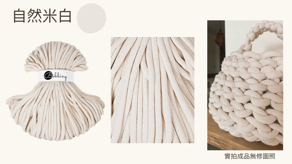 Bobbiny 回收再生棉繩 9mm 辮子繩 米白